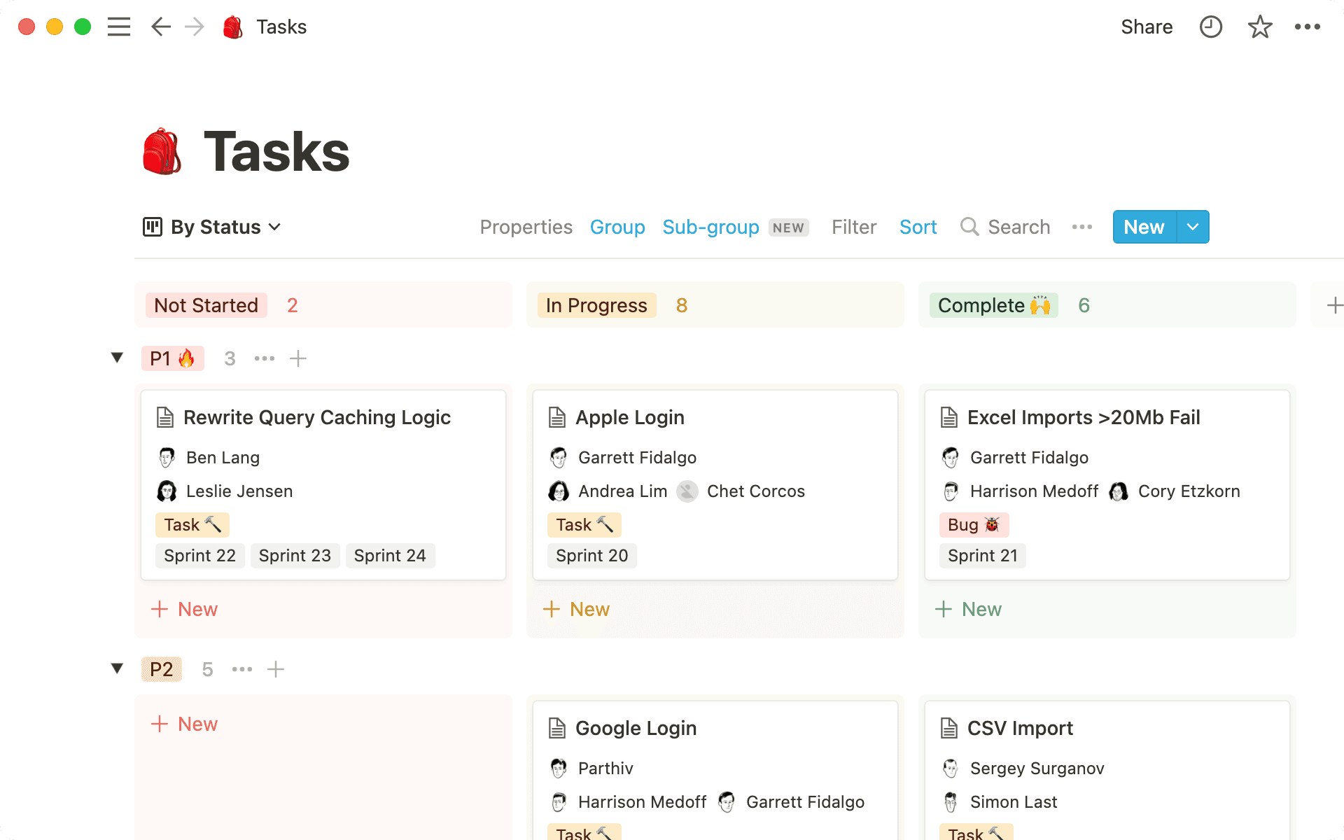 If your board was already grouped by a Status property (e.g. "Not started," "In progress," "Complete"), now you can create sub-groups of those tasks organized by Priority, Team, Assignee, or whatever property you need — all while keeping your Status columns intact.Group by more properties, including Relation, Number, Date and more